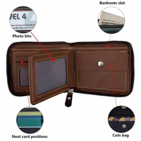 Portefeuille Classique en Cuir PU Pour Homme – Moraillon Court et Fermeture Éclair – Haute Qualité et Multi-Poches - Marron