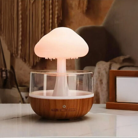 Humidificateur D'air avec Lampe Pluie De Champignons - Diffuseur D'aromathérapie - 7 Couleurs - Rechargeable - Télécommande
