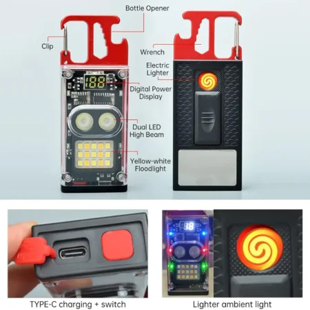 Lampe De Poche LED - Allumer la cigarette à Énergie Solaire - Rechargeable - Multifonction - 8 Modes D'éclairage - Coupe-ceinture De sécurité - Tournevis