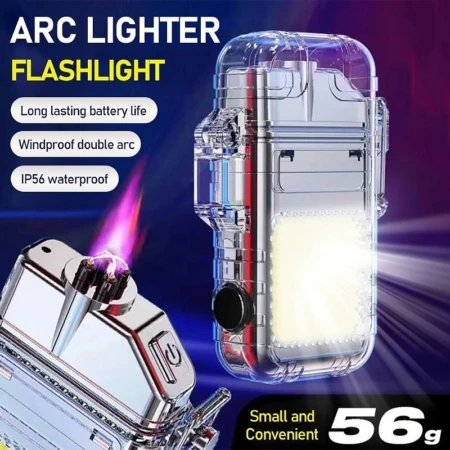 Briquet Électrique Plasma USB-C Étanche IP56 avec Lampe COB – Blanc – Rechargeable