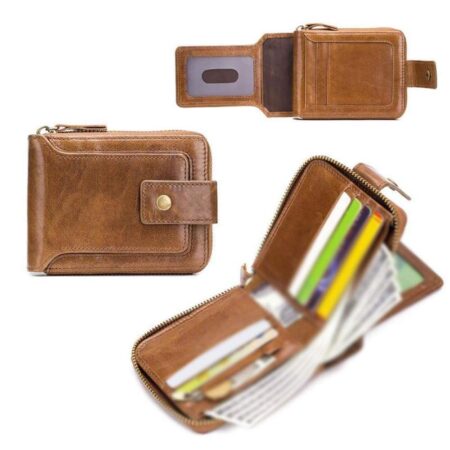 Portefeuille Classique en Cuir PU Pour Homme – Moraillon Court et Fermeture Éclair – Haute Qualité et Multi-Poches - Marron