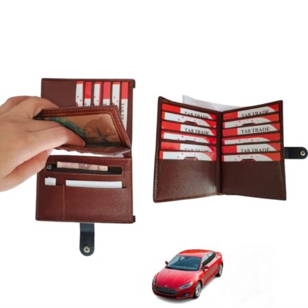 Porte Papier Voiture Avec Porte feuilles Et Porte-cartes 3en1 - Qualité Supérieure - Marron