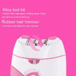 Il est fourni avec neuf têtes de rasage et une pince à épiler.