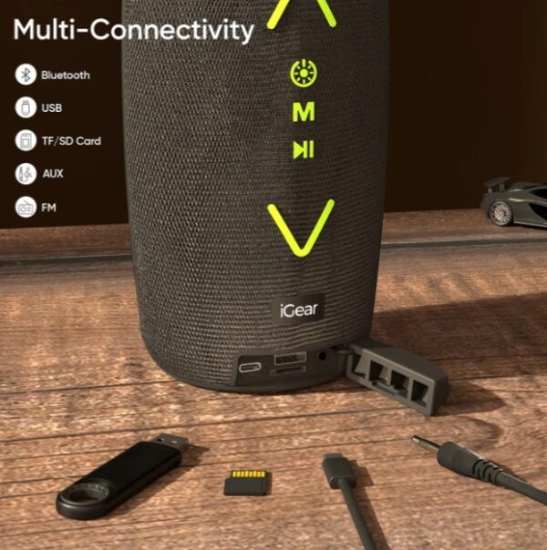 Grâce à son jeu de lumière à 180°, cette enceinte offre une expérience visuelle époustouflante qui transforme n’importe quel espace en une ambiance festive et dynamique.