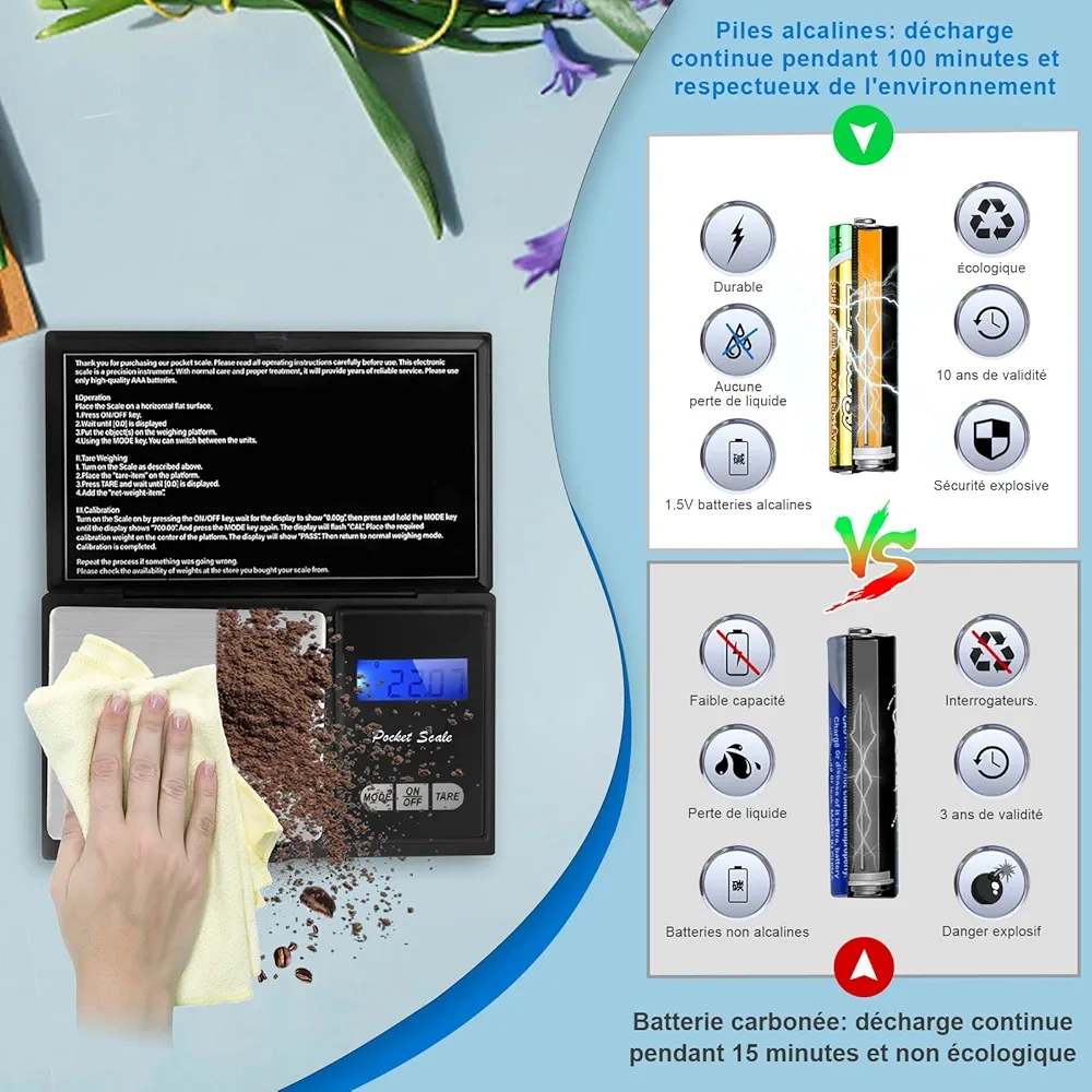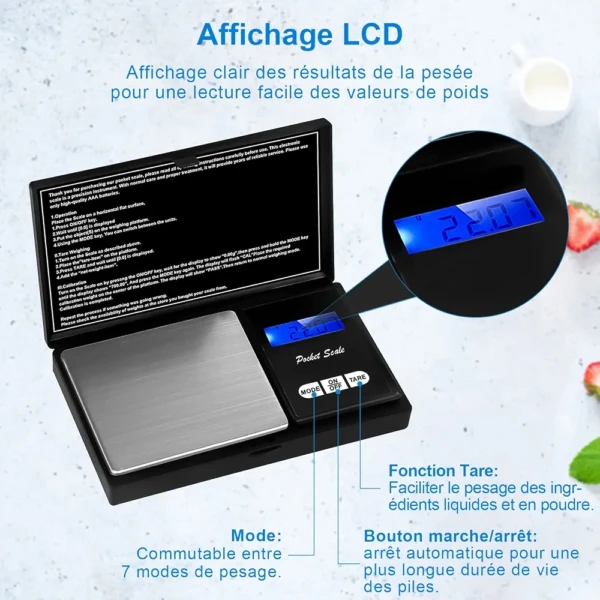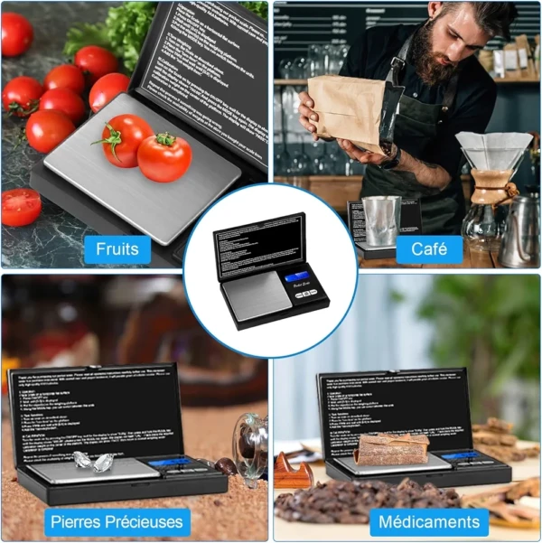 Balance de poche Avec une précision au centième, cette petite balance de poche vous permettra de peser les objets les plus petits à très forte valeur.