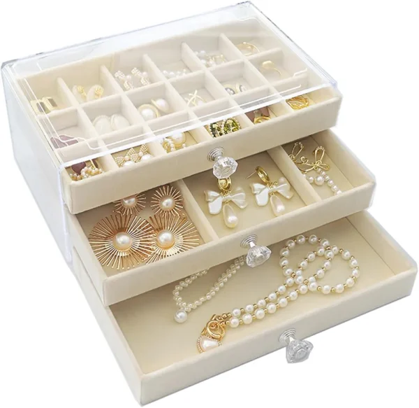 Boîte à Bijoux Pour Femme – 3 Tiroirs – Organiseur De Bijoux – Acrylique Transparent (9,3 x 5,3 x 4,1 cm)