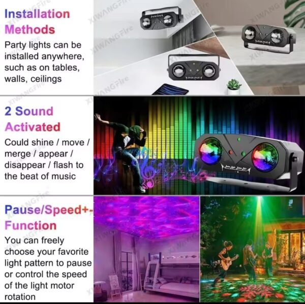 Conception innovante : L’association de lumières festives et de boules disco crée des effets éblouissants et une ambiance colorée.