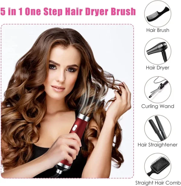 Brosse Pour Sécher Les Cheveux – 5 × 1 Multifonctions – Coiffantes Lissantes et Adoucissantes – Rouge