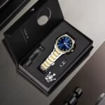 Montres homme luxueuses et modernes au design classique et élégant, avec un boîtier carré en métal et un bracelet en acier inoxydable argenté.