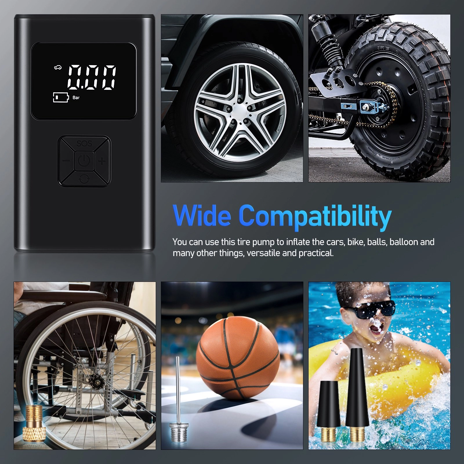 Notre gonfleur de pneus portable est polyvalent.