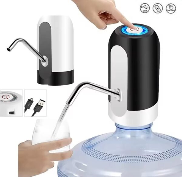 Matériau sûr : distributeur d’eau portable sans BPA, tuyau en silicone de qualité alimentaire, acier inoxydable 304, plastique ABS haute densité, non toxique et sans odeur, chargement USB, pompe à bouteille d’eau avec batterie au lithium intégrée de 1200 mAh.