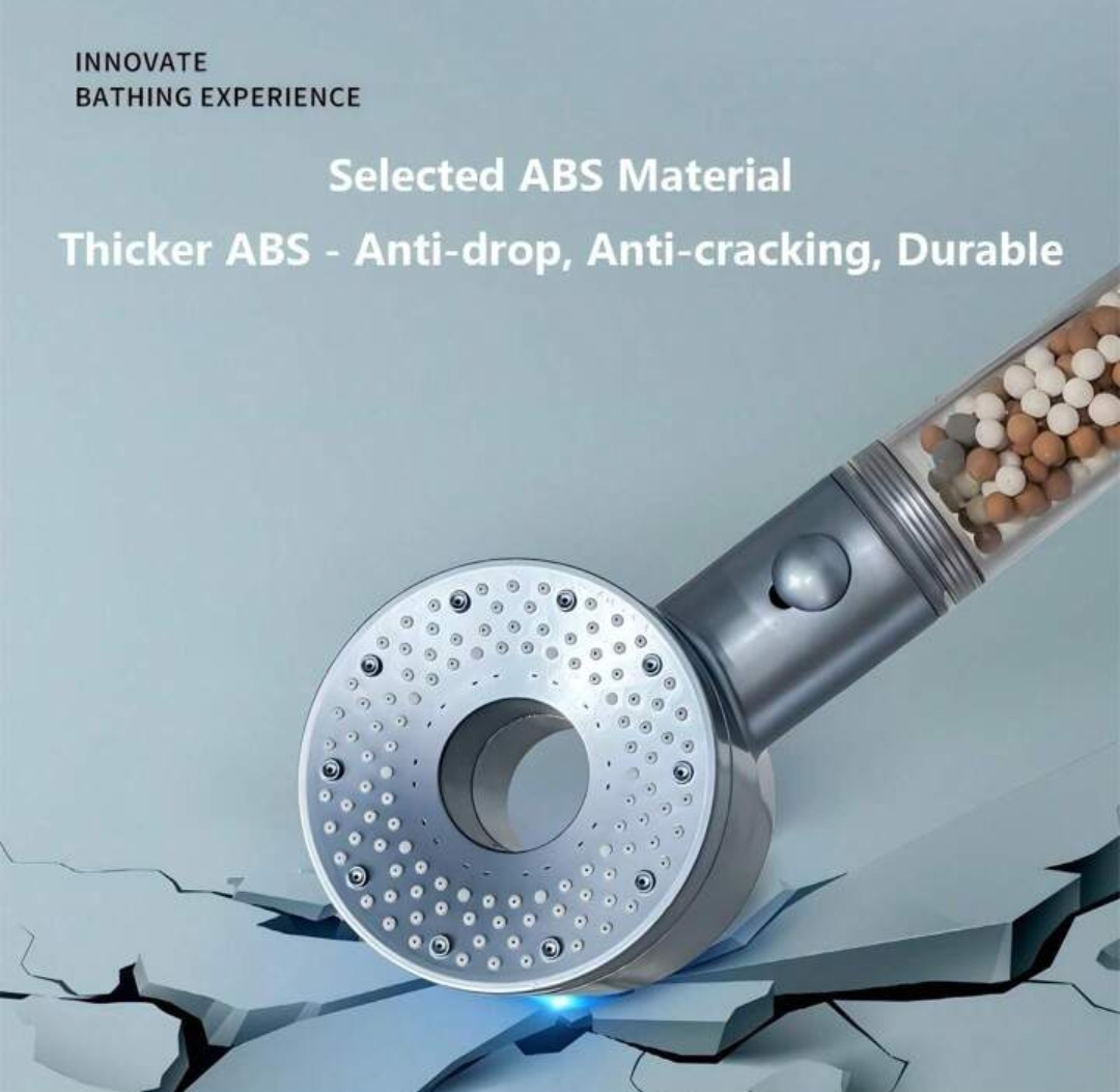 La pomme de douche à jet Toiysyy est équipée de perles de pierre ioniques filtrées grises, rouges et blanches, qui activent la valeur du pH, adsorbent les métaux/composés lourds et purifient les ions métalliques toxiques et nocifs et les virus bactériens.