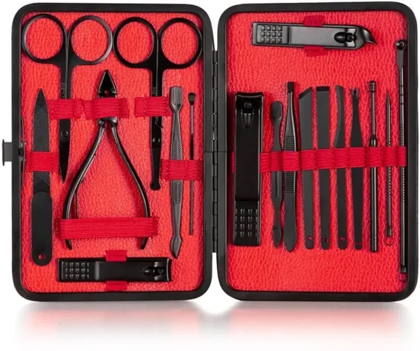 Ensemble Professionnel De Manucure et Pédicure 18 Pièces Multifonctions Avec Boîte de Cadeau – Noir