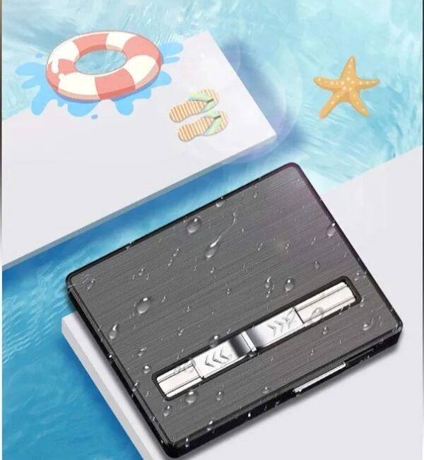 Gardez vos cigarettes dans un étui à cigarettes lorsque vous sortez il suffit de l’emporter avec vous, c’est très pratique. Cet étui à cigarettes, équipé d’un fil d’allumage et d’un puissant briquet à flamme bleue, est étanche et confortable à transporter.