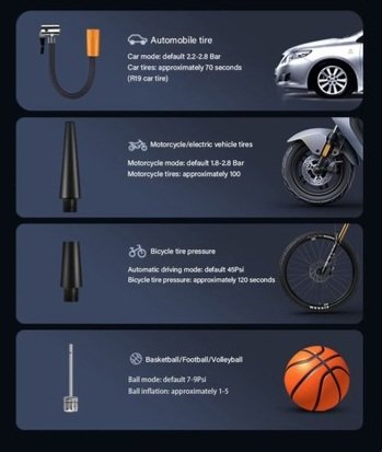 Adaptée aux voitures, motos, bateaux et même aux ballons de sport, cette pompe est un outil polyvalent qui répond à tous vos besoins en matière de véhicules et d’équipements.