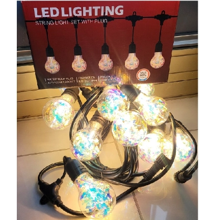 Guirlande lumineuse LED RGB à ampoules rondes style goutte, idéale pour apporter une touche festive et colorée à tous vos espaces.