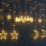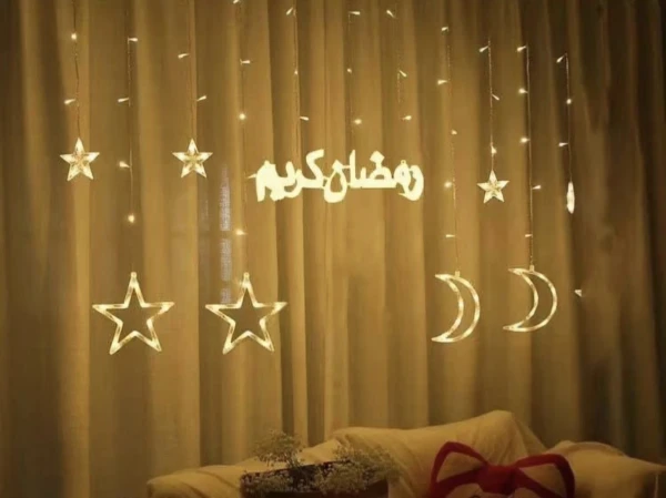 Les guirlandes lumineuses en forme d’étoile et de lune scintillantes ont été largement utilisées, adaptées pour une utilisation pendant le Ramadan, les mariages, les anniversaires, les fêtes, les familles, les cours, les fenêtres, les jardins, les restaurants, les centres commerciaux ou d’autres endroits.