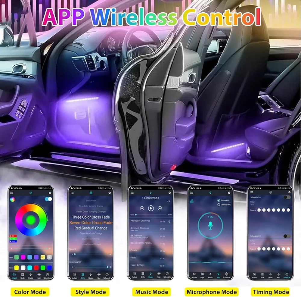 - Kit d’éclairage intérieur RGB sans fil 7 couleurs avec contrôle musical.