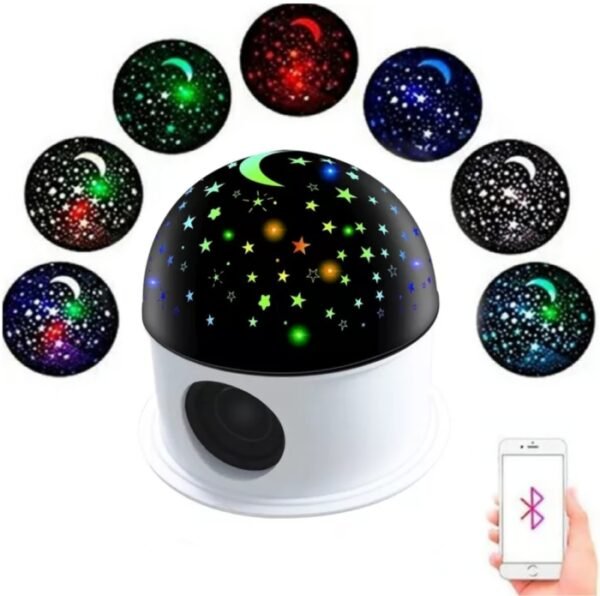 Lampe Projecteur LED Étoiles Multicolores – Haut-Parleur – Bluetooth – Blanc