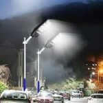 - Lampe solaire LED 100W avec support de montage.