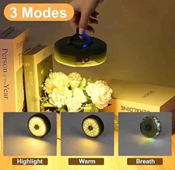 La lampe de camping portable peut régler la lumière chaude et la lumière colorée et basculer entre les modes de dégradé de respiration et de lumière colorée clignotante.