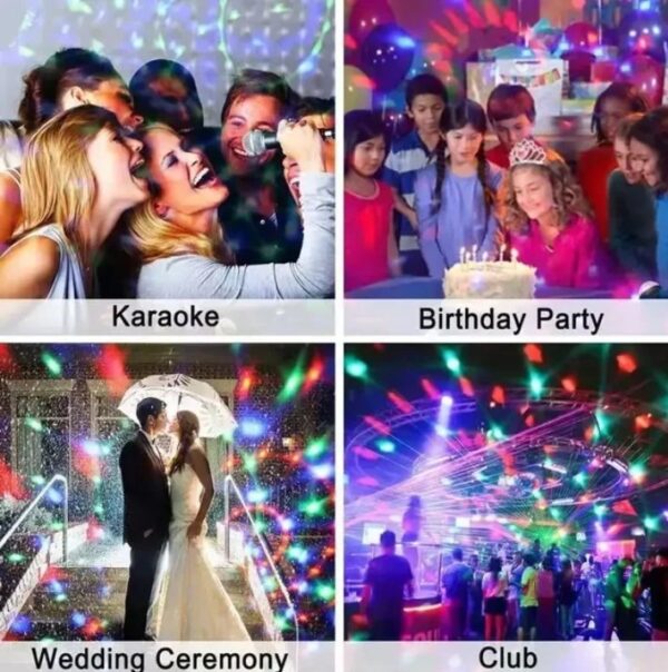 Cette lumière disco est légère et portable. Son utilisation est extrêmement sûre. Vous pouvez la placer sur un bureau ou au sol, la fixer au plafond ou au mur, ou simplement la suspendre pour différentes occasions.