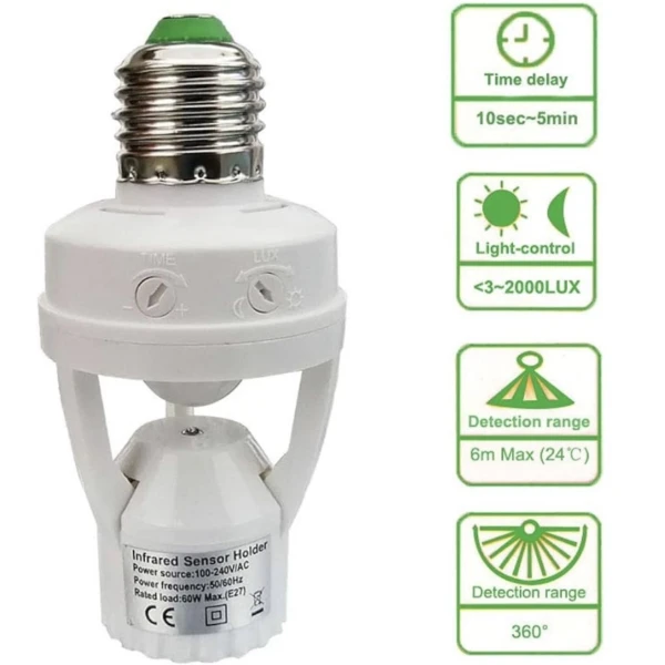 Grâce à son capteur infrarouge PIR, la lumière s’allume automatiquement à l’approche d’une personne et s’éteint après un délai réglable.