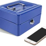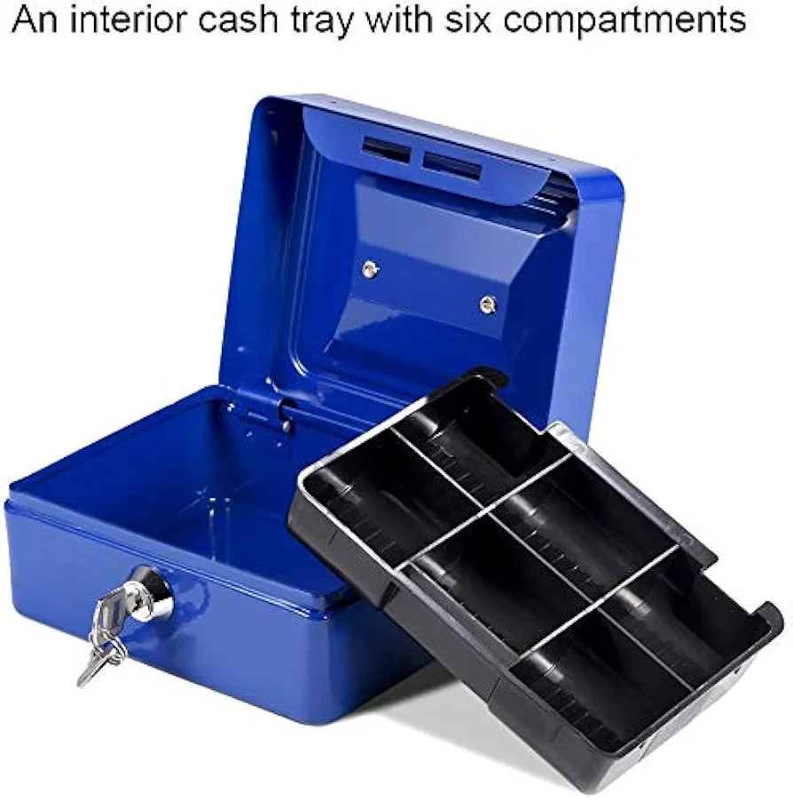 Métal Cach Box – Caisse à Monnaie – Coffre Fort + 2 Clés – 200*160*90 mm – Bleu