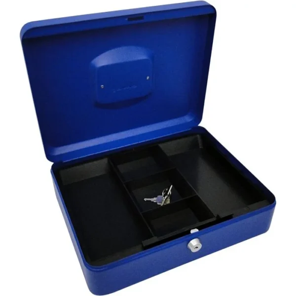 Métal Cach Box – Caisse à Monnaie – Coffre fort – Boîte De Rangement Avec 2 Clés – 30 x 24 x 9 Cm – Bleu
