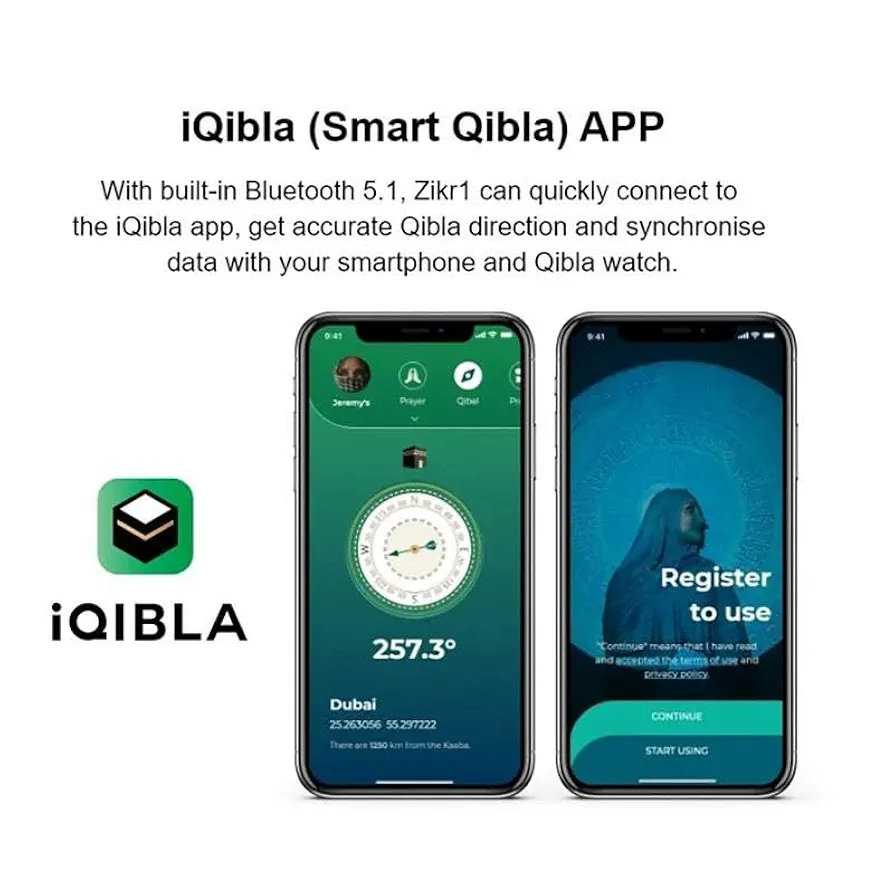Elle intègre le Bluetooth pour une connexion à l’application et inclut des rappels pour cinq prières quotidiennes, ainsi qu’un affichage de l’heure.