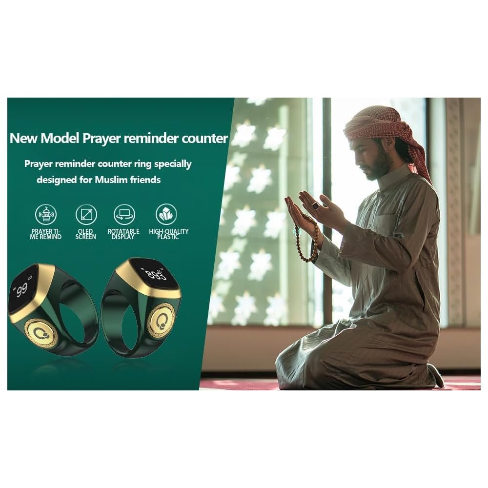 Montre-Bague Avec Compteurs De Prières – 5 Rappels D’heures De Prière – Guide D’orientation De La Prière – Batterie Longue Durée – Ècran OLED – Résistante à L’eau – Rechargeable -Réveil Azan – Vert