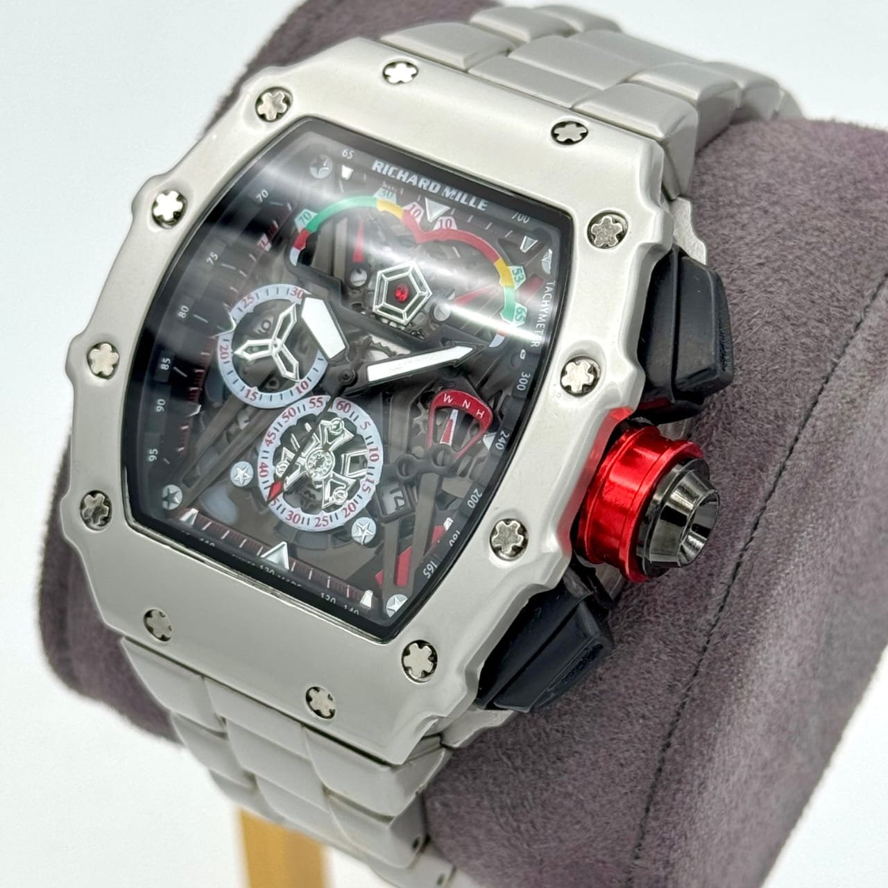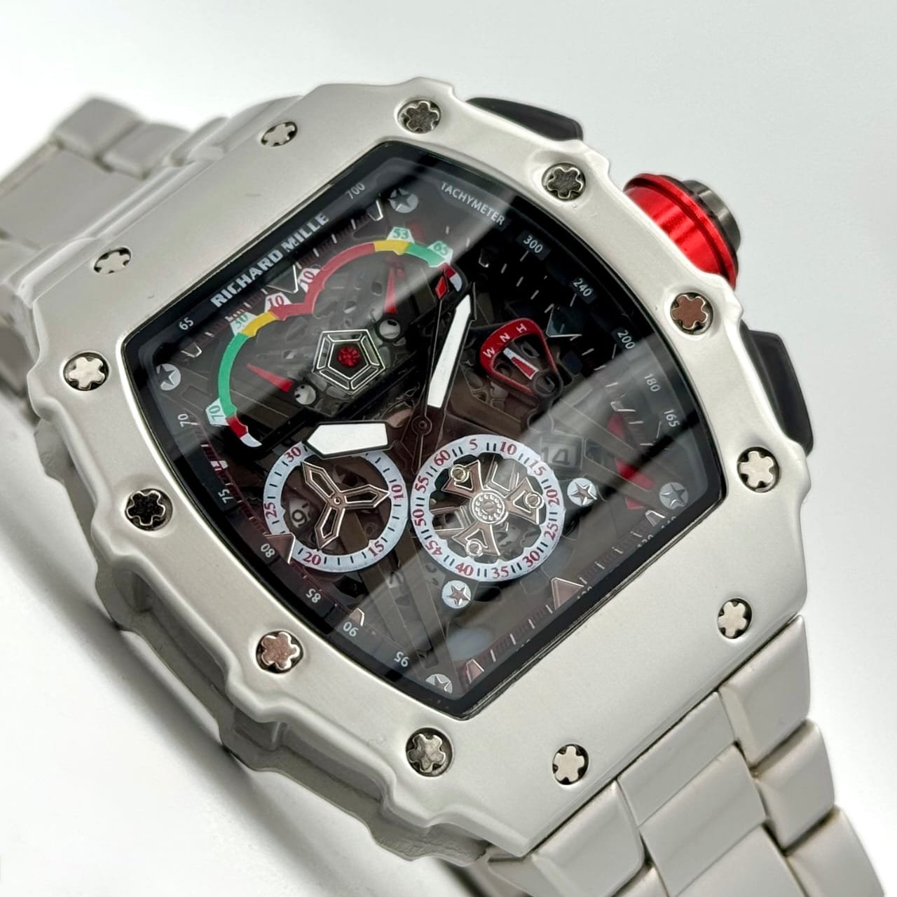 Plongez dans l’univers de la haute horlogerie avec cette pièce d’exception, inspirée du style légendaire de Richard Mille, pensée pour les hommes modernes qui recherchent l’élégance et la singularité au poignet.