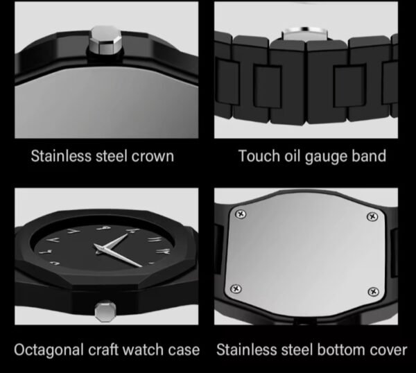 Cette montre en carbone noir est un modèle élégant et moderne qui rehaussera votre style.