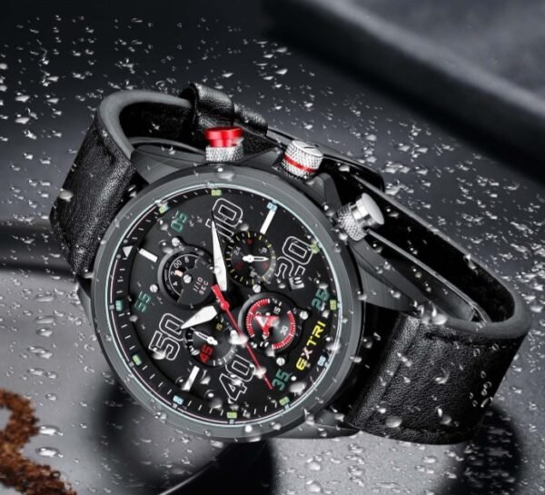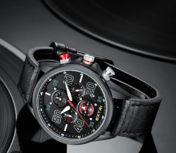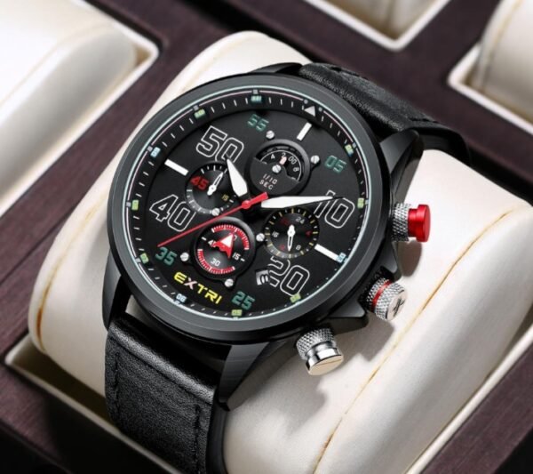Découvrez la montre Extri – un choix d’excellence ! Ce chronographe étanche avec affichage de la date et bracelet confortable de haute qualité offre un style polyvalent.