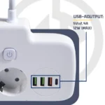 Multiprise Intelligent 6EN1 – 2 Port Prises CA – 3 USB – 1 TYPE C – Anti-Surtension Avec Interrupteur Ét Sécurité Enfant – T2435 – Blanc