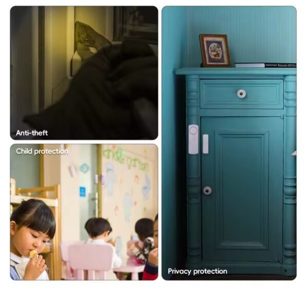 - L’interrupteur à capteur magnétique détecte l’entrée pour protéger votre maison ou votre bureau, que vous soyez à l’intérieur ou à l’extérieur.