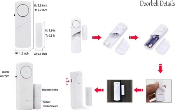 Pack De 3 Capteur D’alarme D’ouverture De Porte et de Fenêtre Sans Fil – Magnétique – Antivol – Protection Domestique
