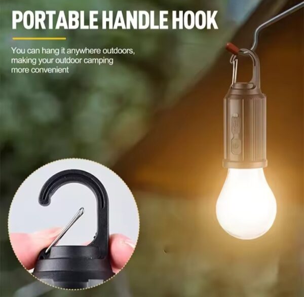Elle est également dotée d’un crochet de suspension, vous permettant de l’accrocher au plafond de votre tente, à des branches ou à toute autre surface adaptée, pour un éclairage mains libres et polyvalent.