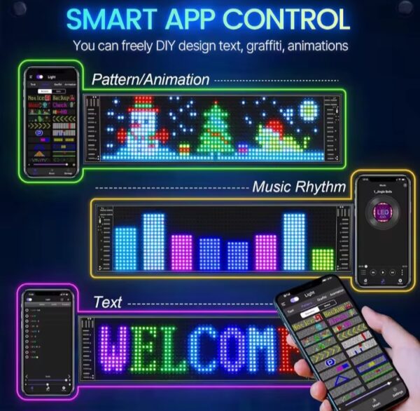 Grâce à ce panneau flexible, créez des textes, des motifs et des animations adaptés à vos besoins et à vos scènes, en ajustant la luminosité et la vitesse selon vos envies.