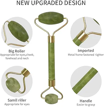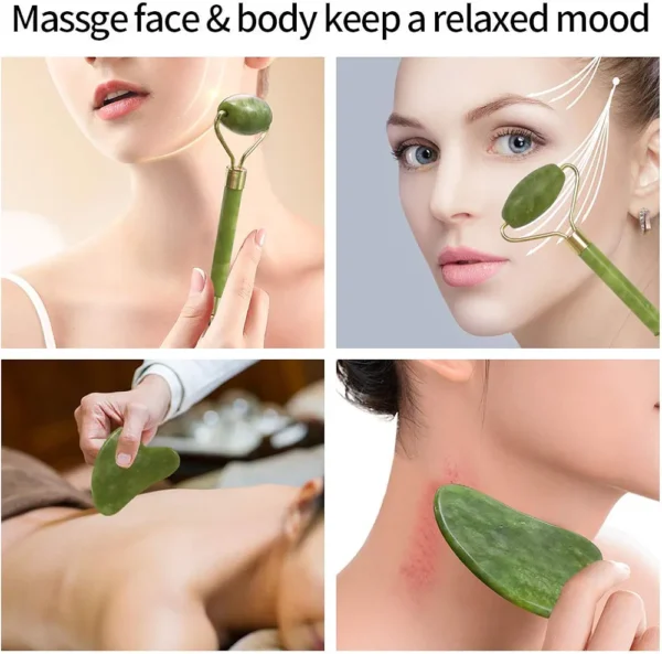 Rouleau de jade et outil de gua sha, masseur facial en quartz naturel, rouleau de pierre de jade pour le visage et le cou, pour un massage raffermissant et amincissant.