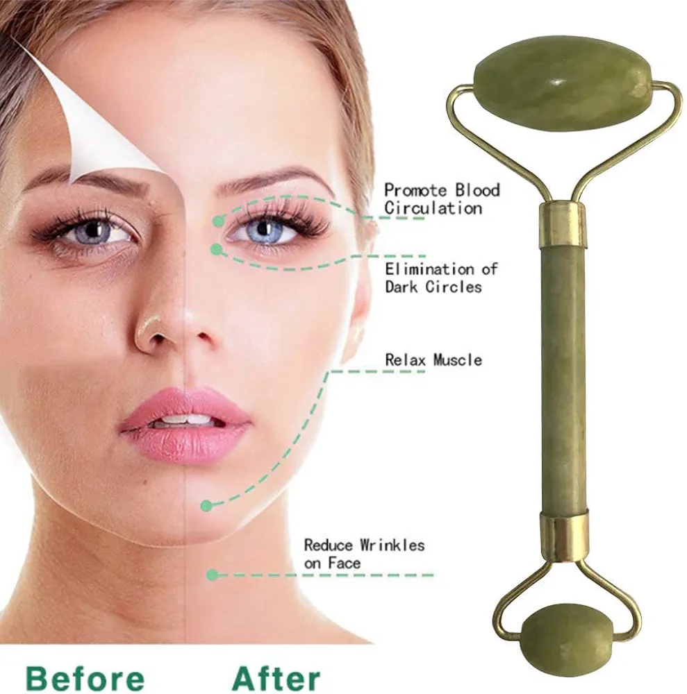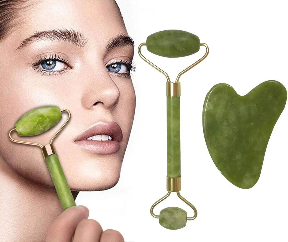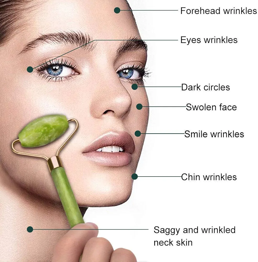 Rouleau de jade et outil de gua sha, masseur facial en quartz naturel, rouleau de pierre de jade pour le visage et le cou, pour un massage raffermissant et amincissant.