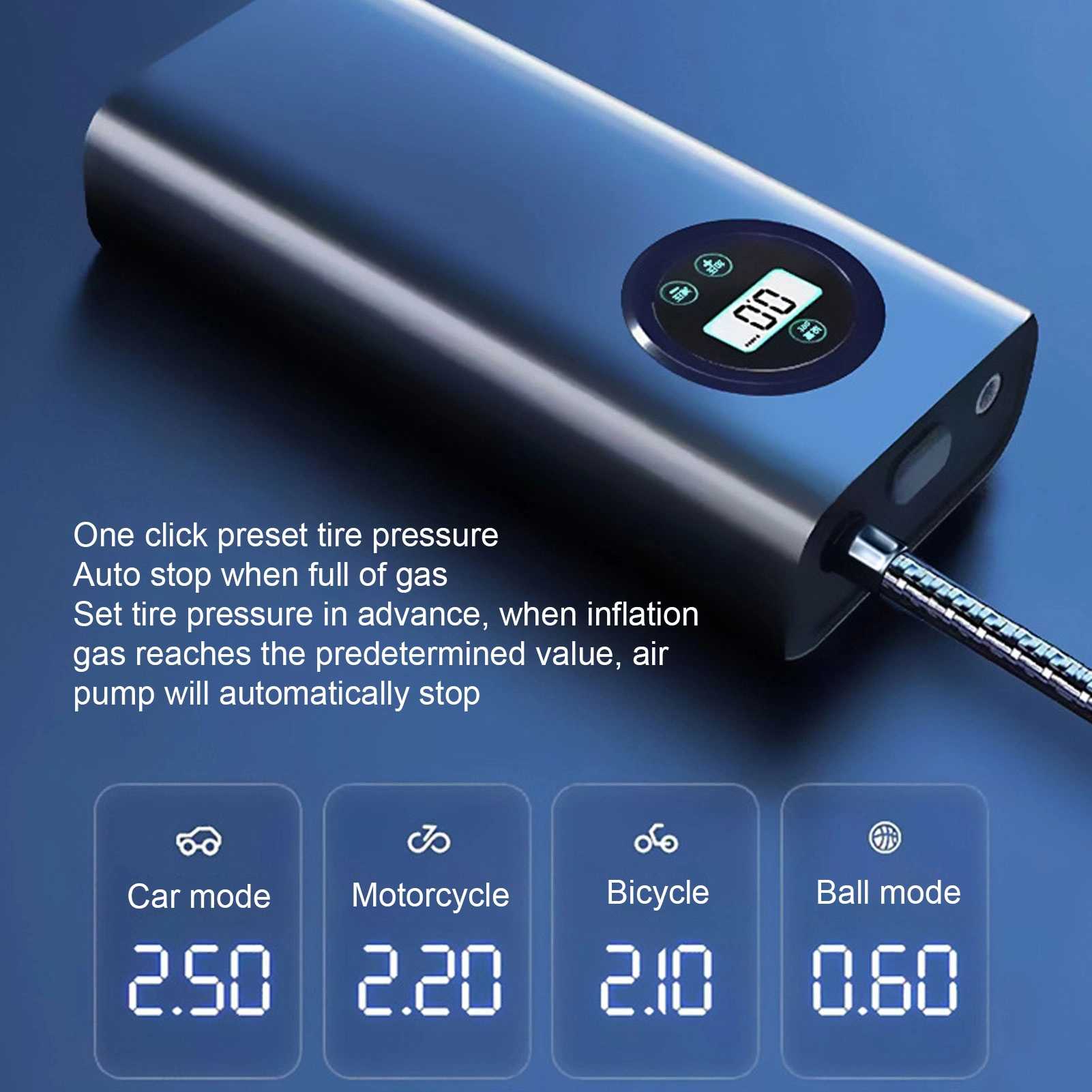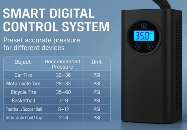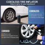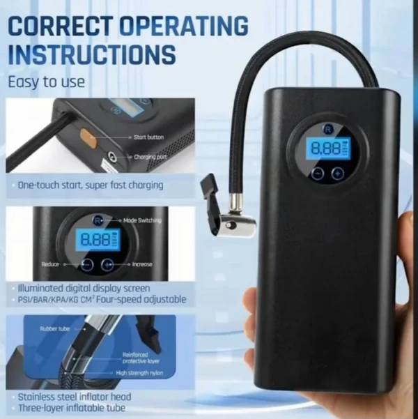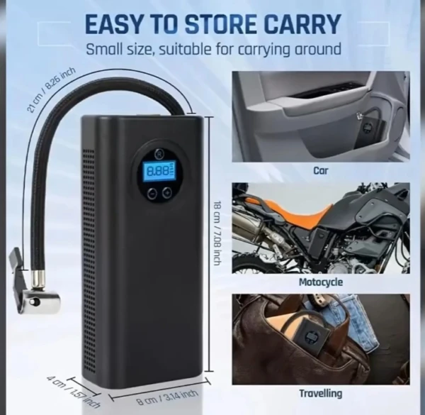 Ce gonfleur polyvalent et pratique convient au gonflage des pneus de voiture, de vélo, de moto et autres véhicules gonflables.