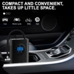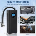 Ce gonfleur de pneus compact est facile à transporter et à ranger, et prêt à l’emploi.