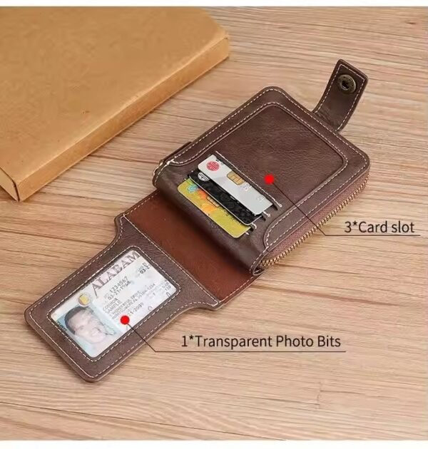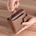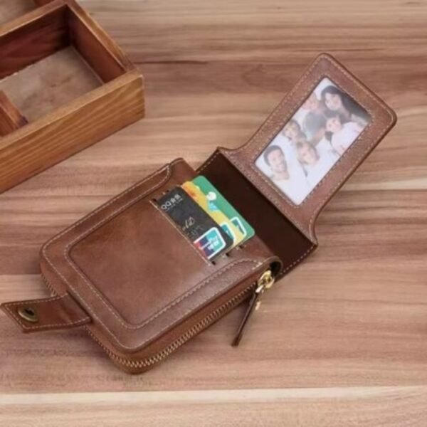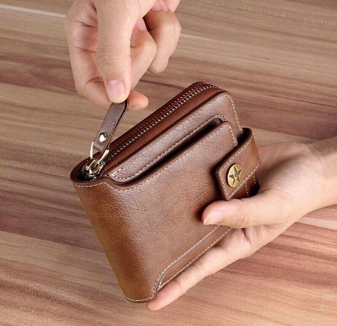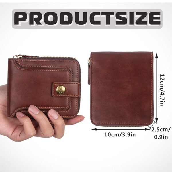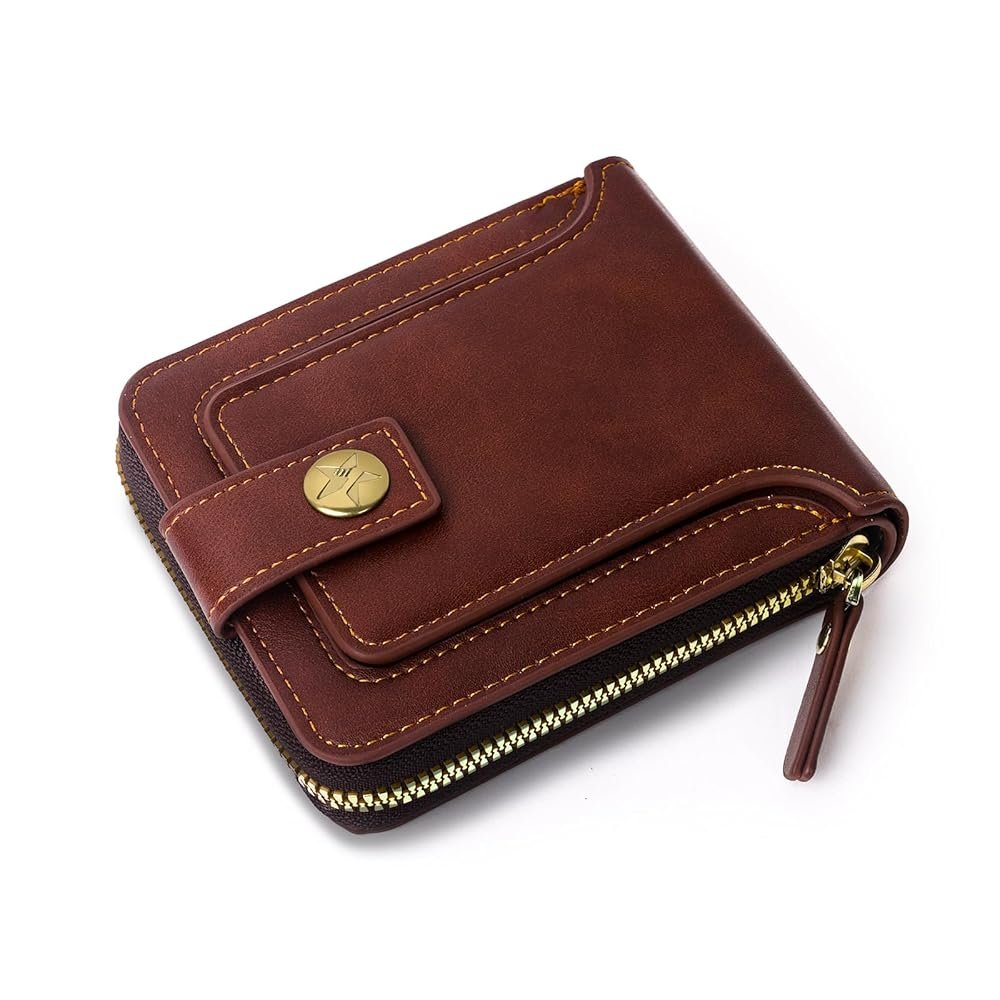 Portefeuille Classique en Cuir PU – Haute Qualité – Moraillon Court et Fermeture Éclair – Multi-Poches – Marron