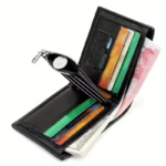 Fabriqué en similicuir et intérieur en polyester, il est doté d’une grande pince à billets, d’un compartiment photo, d’un compartiment pour cartes et d’un intérieur doux au toucher.