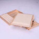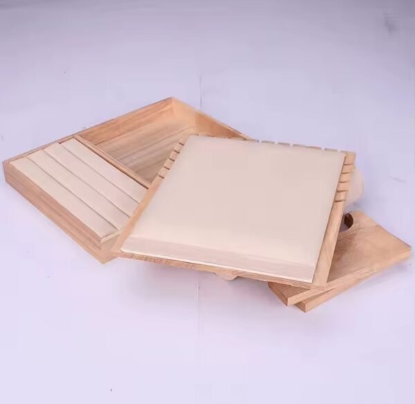 - Matériaux : Bois de bambou et cuir suédé.