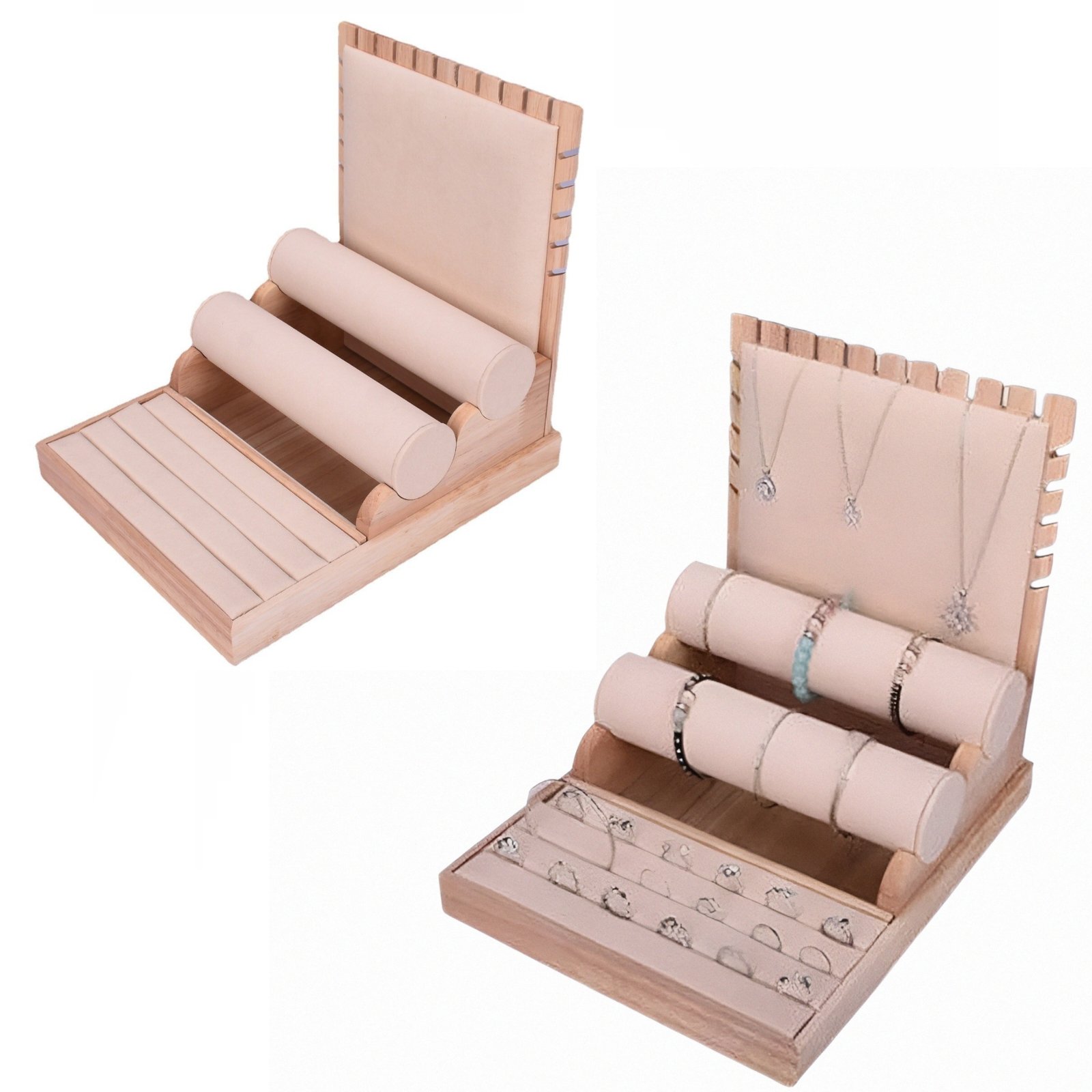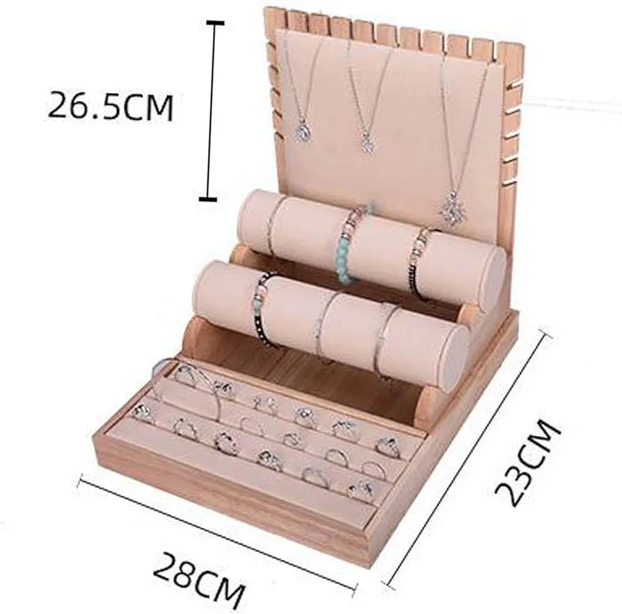 Présentoir À Bijoux Multifonctionnel – Socle En Bois Pour Colliers Boucles D’oreilles Et Bagues