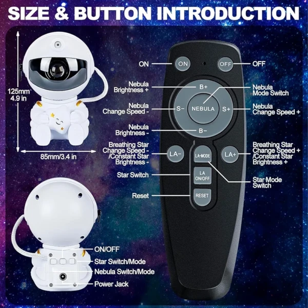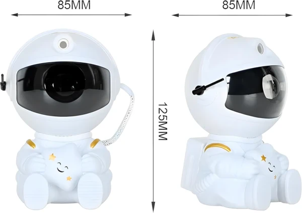La tête d’astronaute pivote à 360°, vous permettant de projeter la nébuleuse où vous le souhaitez, sans aucune limite.