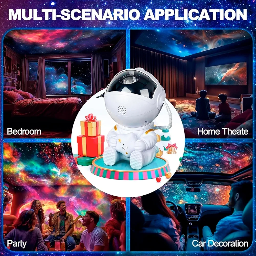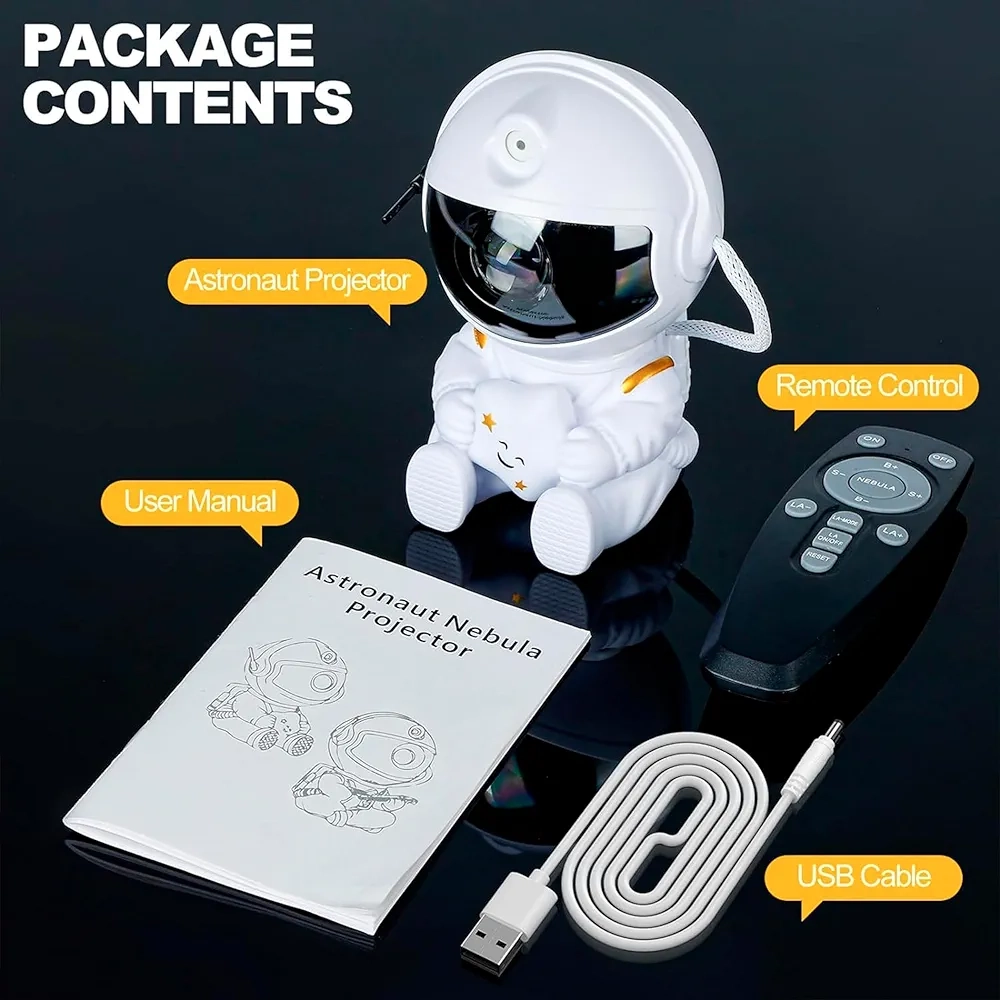 La tête d’astronaute pivote à 360°, vous permettant de projeter la nébuleuse où vous le souhaitez, sans aucune limite.