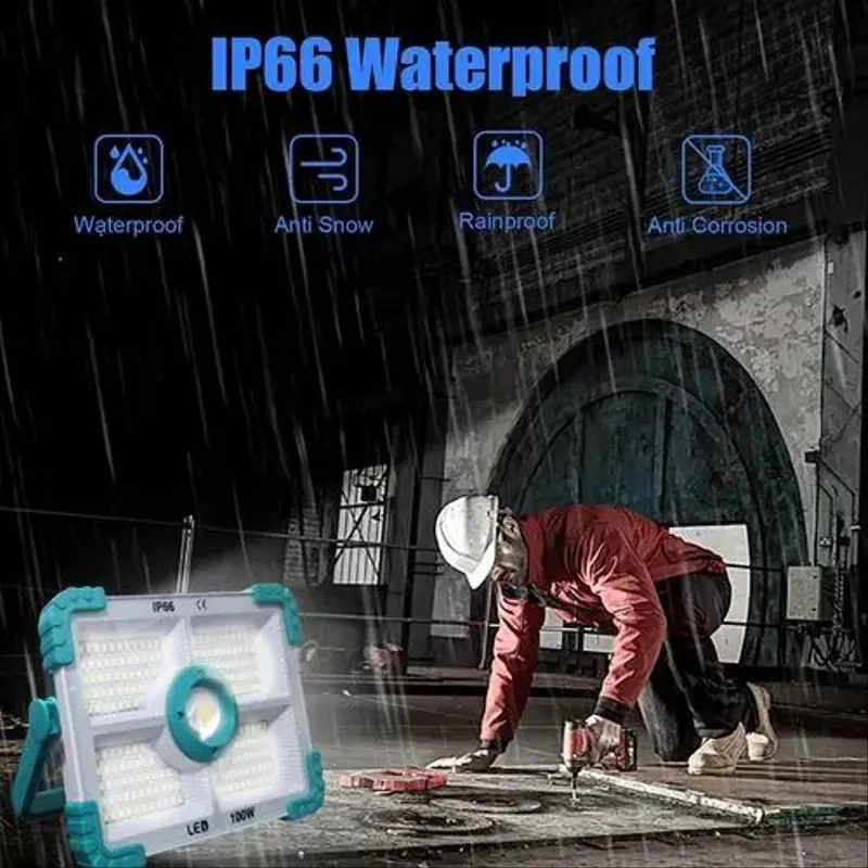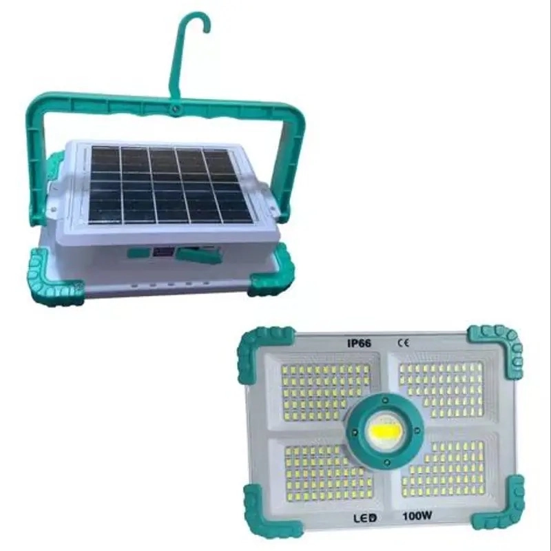 Optez pour un éclairage puissant, pratique et durable avec ce projecteur solaire portable de 100W.
